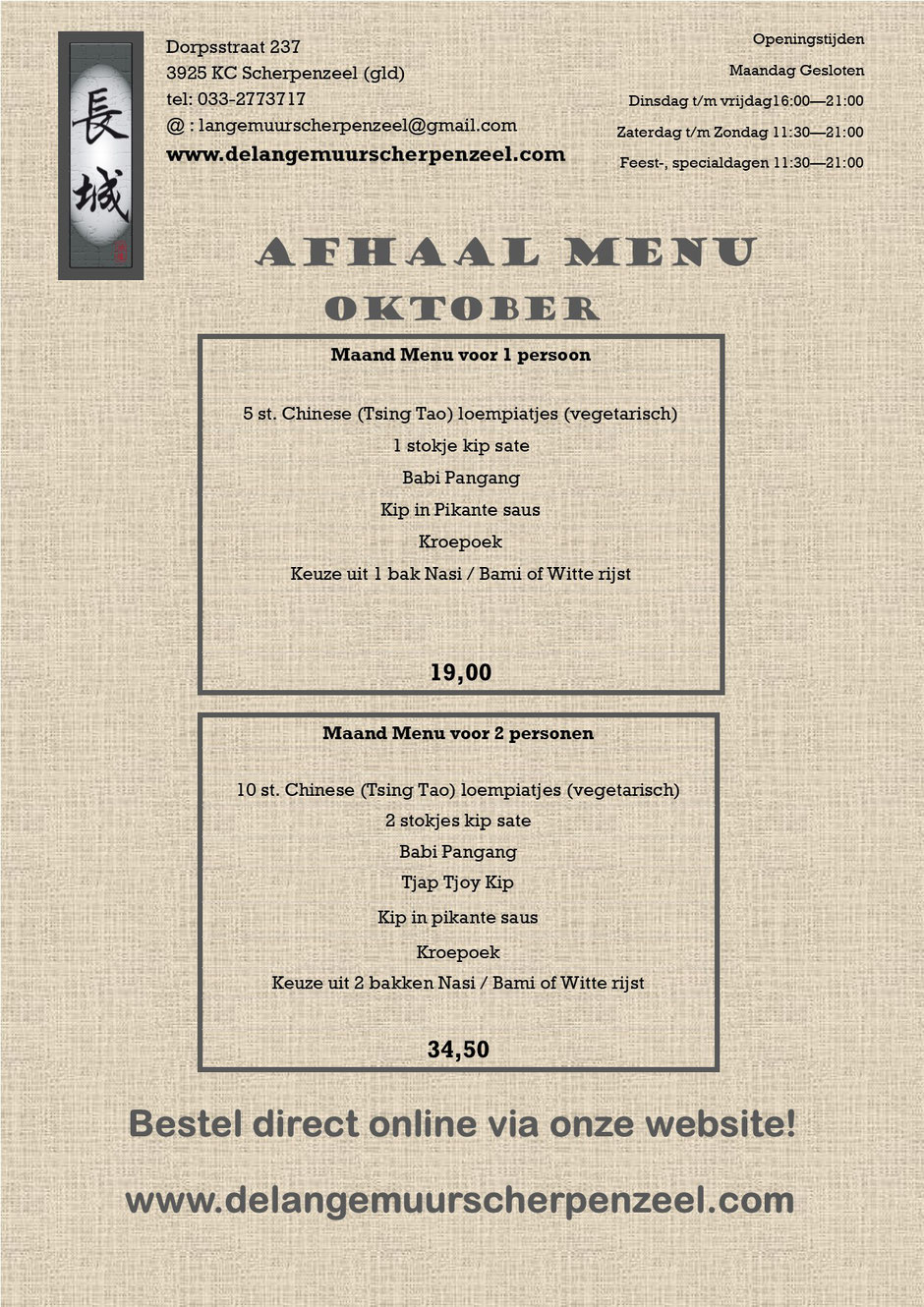 heeft u een feest of partij waarbij u uw gasten wil trakteren op een heerlijke chinese buffet? dan kunt u bij ons een terecht om een chinees buffet te organiseren voor thuis of in uw bedrijf. Wij zullen het op afgesproken tijdstip leveren en zullen het ook weer vies terughalen zodat u daar geen omkijken meer naar heeft. Het enige wat u hoeft te doen is opscheppen en genieten ervan.